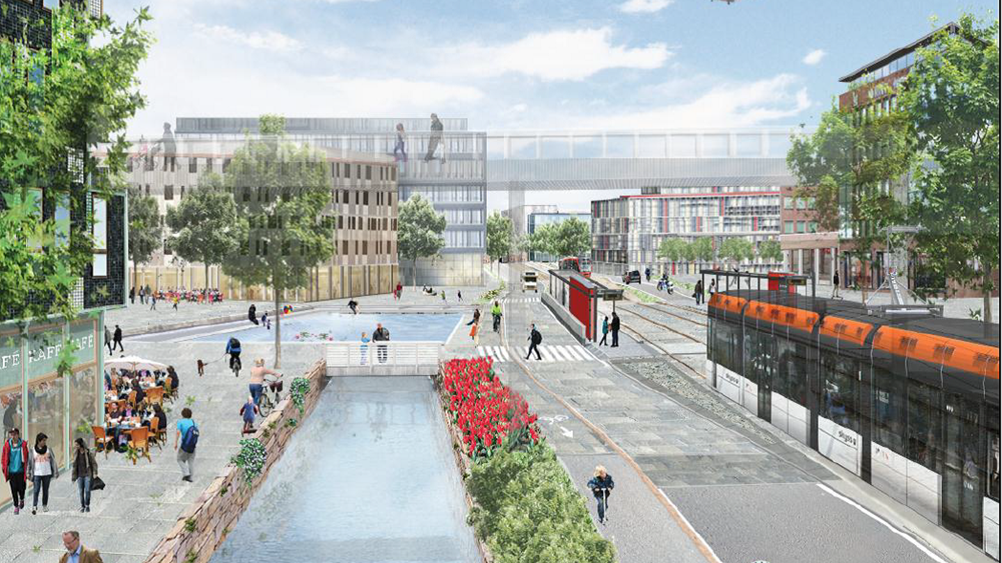 Et viktig transformasjonsområde som får miljømessig oppgradering og nye bybanestasjoner som tilrettelegger for bolig- og næringsutvikling.